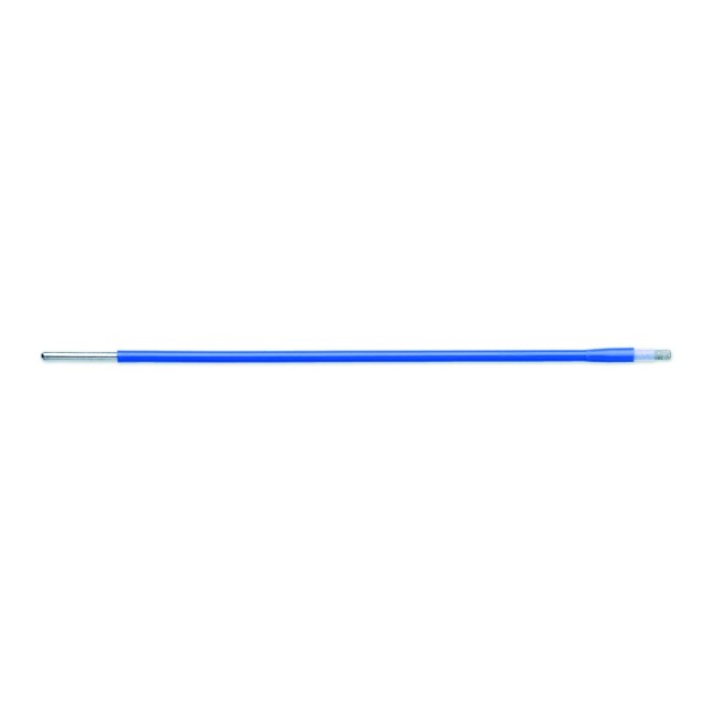 The electrode is compatible with most standard electrosurgical pencils and is bendable up to 90 degrees, allowing customization of the angle for optimal tissue access. Cleaning is simple, requiring only a moist lap sponge or other non-abrasive material, although the device is intended for single use to preserve sterility and performance.