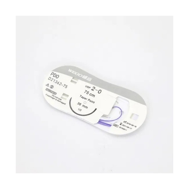 Equipped with SH (Small Half-Circle Taper Point) needles, this double-armed suture facilitates symmetrical suturing and uniform tension distribution. The 1X36 configuration provides ample suture length for various surgical techniques. The taper point design allows for smooth tissue penetration while minimizing trauma, making it ideal for soft tissue approximation.