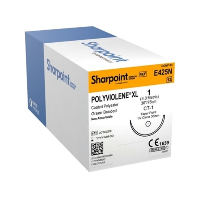 Suture, Polyviolene XL 0 Green 1x30 CT-1 is manufactured by Surgical Specialties.